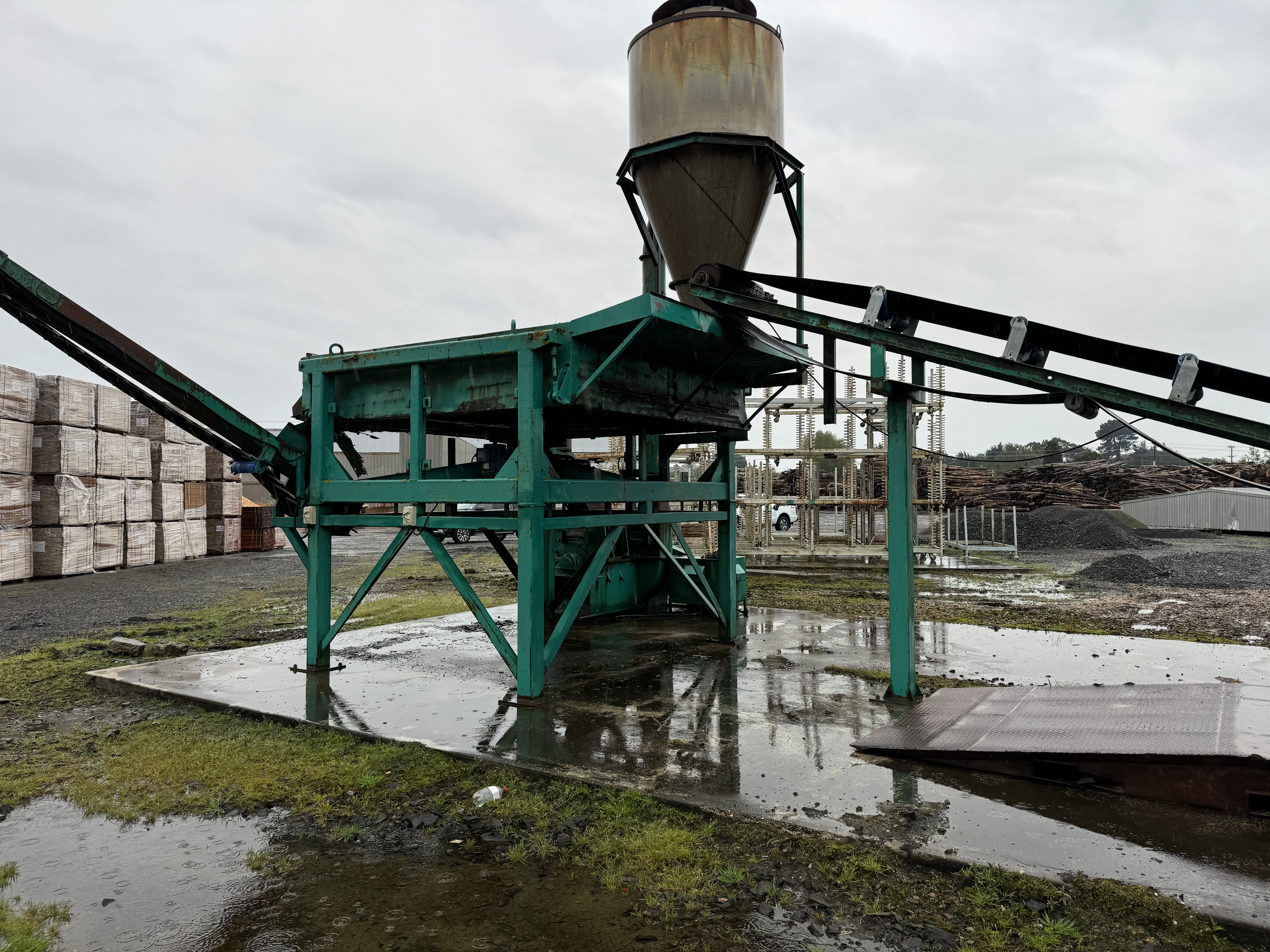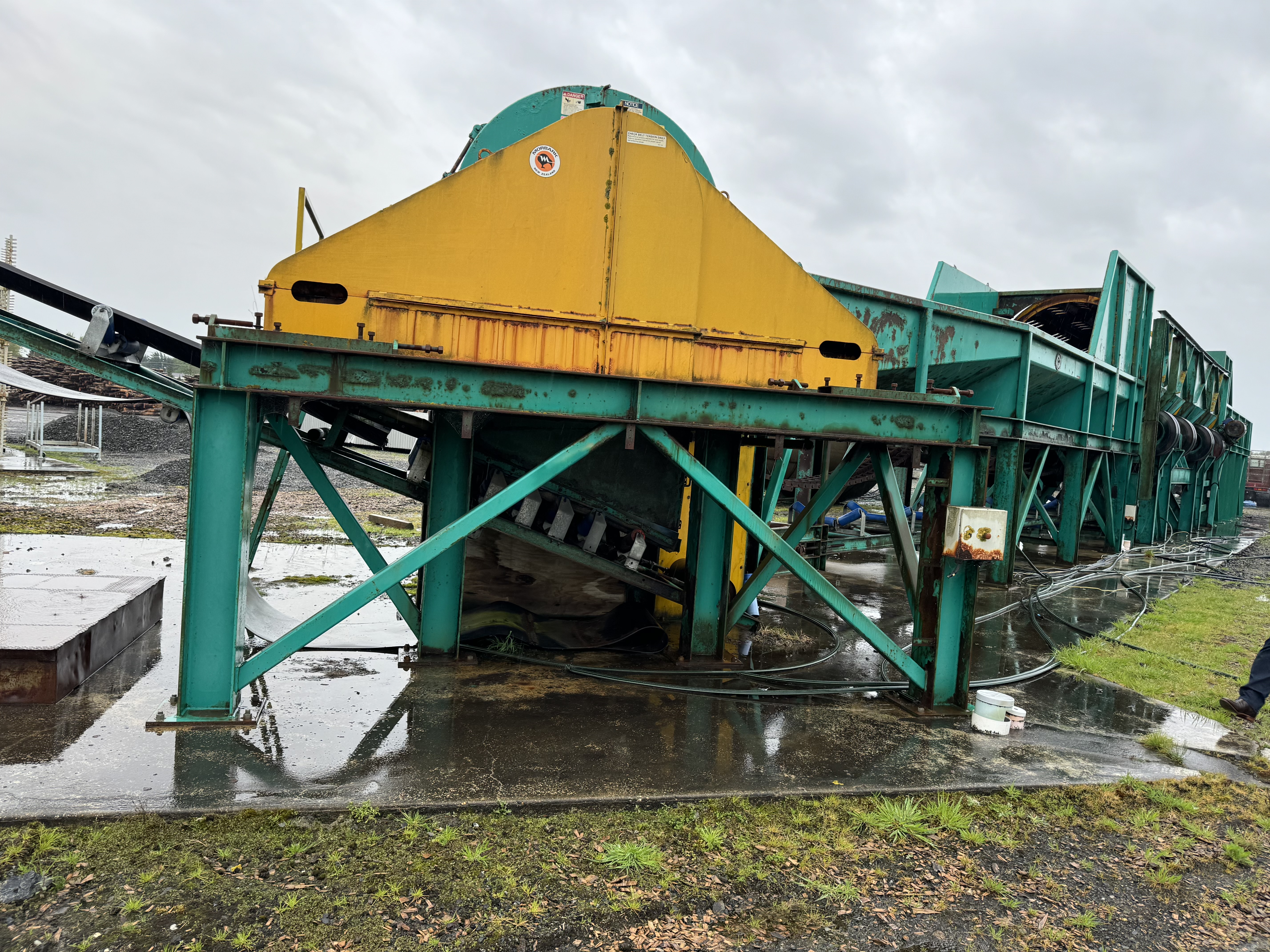 Morbark NZ built a new debarker infeed, debarker outfeed and supplied a new chipper mounted on a subbase, the plant ran for 2-3 weeks then was mothballed, so the new equipment has only worked for an estimated 100hrs and has sat outside in the weather since, although a lot of surface rust and paint missing equipment is in very good condition.