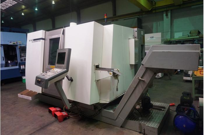 CNC Control SIEMENS 840 D,Turning diameter 100 mm,Rolling length Z: max. 345 mm,Spacing spindles 580 mm,Max. Torque 200 Nm,Main spindle:,Speed Range 35 - 7000 RPM / -1,Spindle power 35/26 kW,Axis X 1 - 220 2 - 120 mm,Z axis 1 - 320 2 - 345 mm,Speed run X: 30 m / min,Max. Bar diameter 45 mm,Speed Range 35 - 7000 RPM / -1,Revolver 2,C-axis 0.001 degrees,Spindle motor power 35/26 kW,Shaft diameter 25 mm (DIN 69880),Axis Z spindle 380 mm,Space tools 2 x 12 pos.,Speed range 30-6000 min -1,Motor power 3,8 / 2,1 kW,Power-driven 2 x 12 stations,Spindle handle with max diameter. 140 mm,Chip conveyor