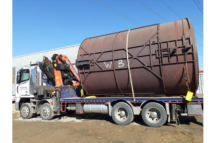Steel mould with framing for rotary moulding. Has finite analysis and earthquake certification.